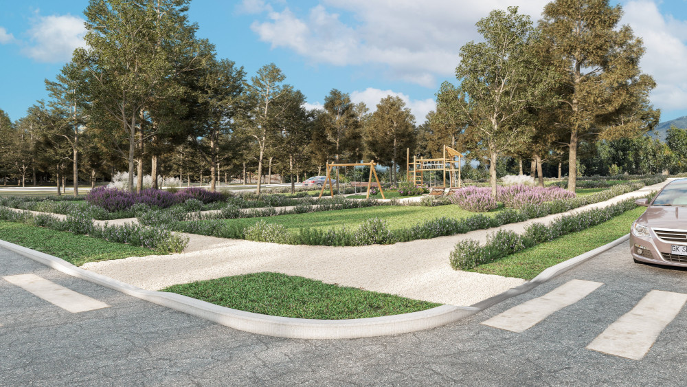 El proyecto se estructura en una serie de pasajes cerrados en torno a una gran plaza central, asegurando tanto la seguridad y control de accesos hacia las casas, como áreas verdes y zonas de juegos para la familia y niños a pasos del hogar.