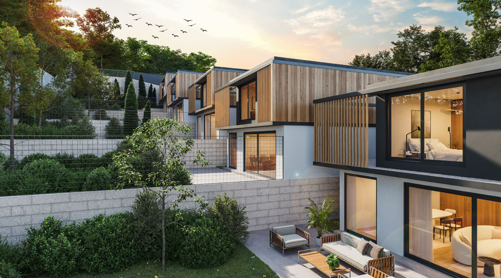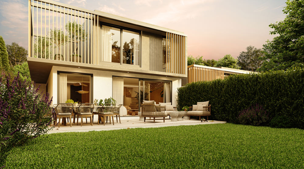 Su estructura permite múltiples ampliaciones y distribuciones dependiendo de la conformación y objetivos familiares. La “piel y cerramientos” exteriores en madera permiten que cualquier ampliación no afecte a vecinos ni estética total del condominio.
