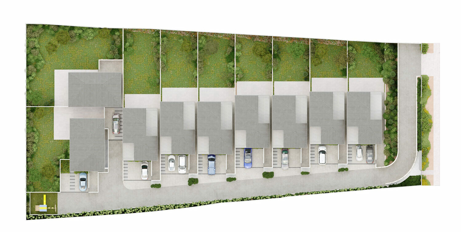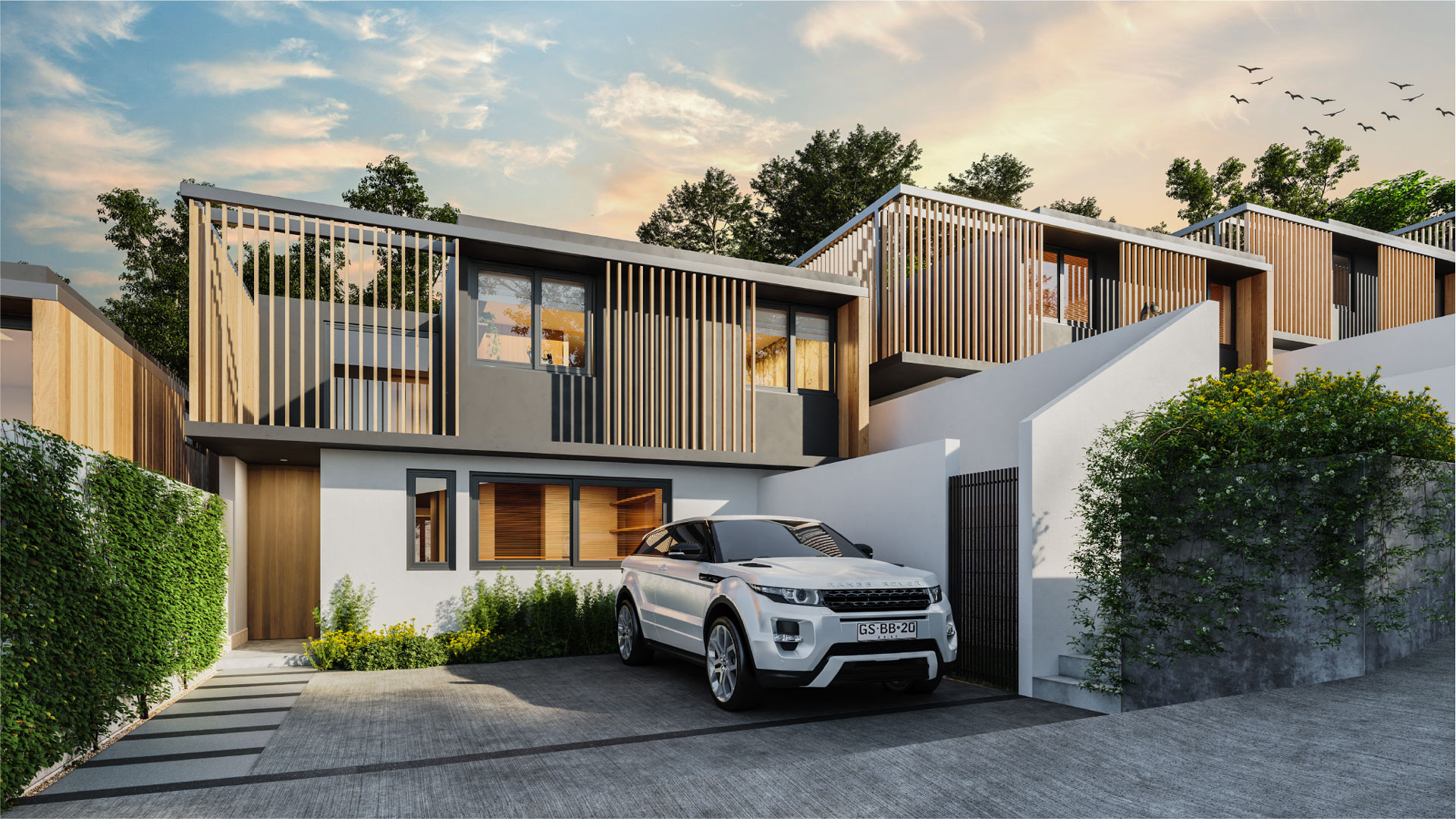 Por último el proyecto incorpora elementos de seguridad como citófono conectado en la cocina con botón de apertura para el portón y puerta peatonal, cámaras de CCTV en los accesos controlados peatonales y vehiculares, y un cerco perimetral hacia la calle para brindar tranquilidad a los residentes.